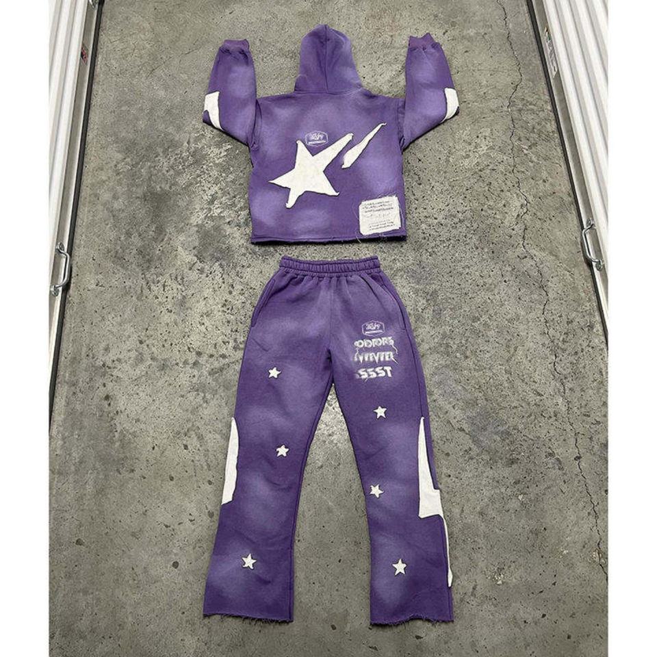 OEM Custom Track Sweatpants and Hoodies Set Applique Embroidery Acid Wash Oversized Tracksuits for Men
