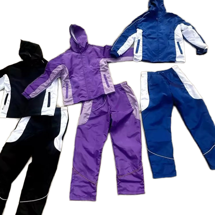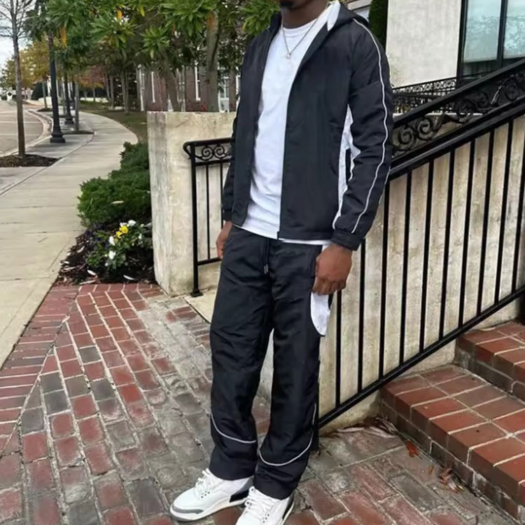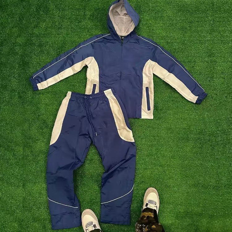 Ensemble veste d'été zippée imperméable unisexe personnalisée OEM Ensemble de survêtements 2 pièces en tissu de nylon coupe-vent à blocs de couleurs avec doublure en maille