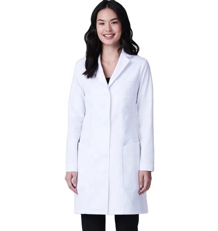 Blouse médicale d'été unisexe personnalisée OEM en spandex blanc 100 % coton à manches longues pour médecins et laboratoires