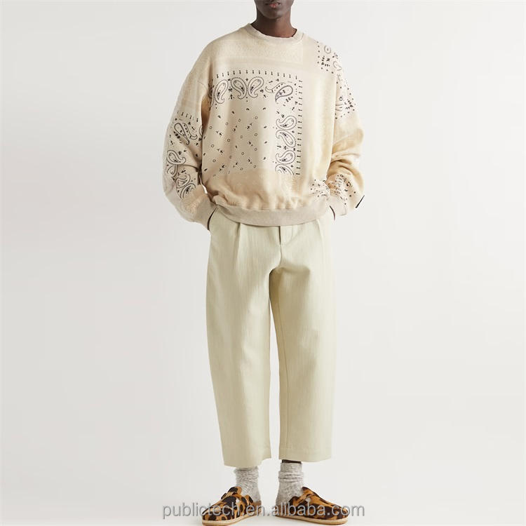 Sweat-shirt matelassé avec patchwork imprimé pour homme