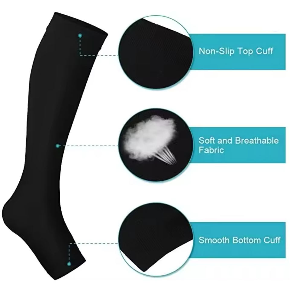 Bas de contention OEM personnalisés pour varices, 23-32 mmHg, socles médicaux jusqu'au genou pour soulager les douleurs aux jambes