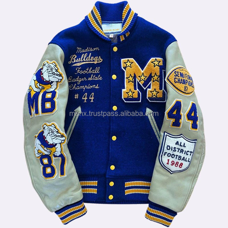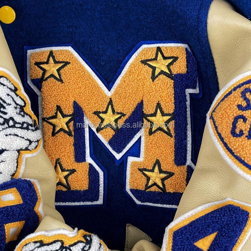 OEM personnalisé hiver 100% laine rose broderie polaire col montant High Street Varsity Bomber lettre veste pour hommes