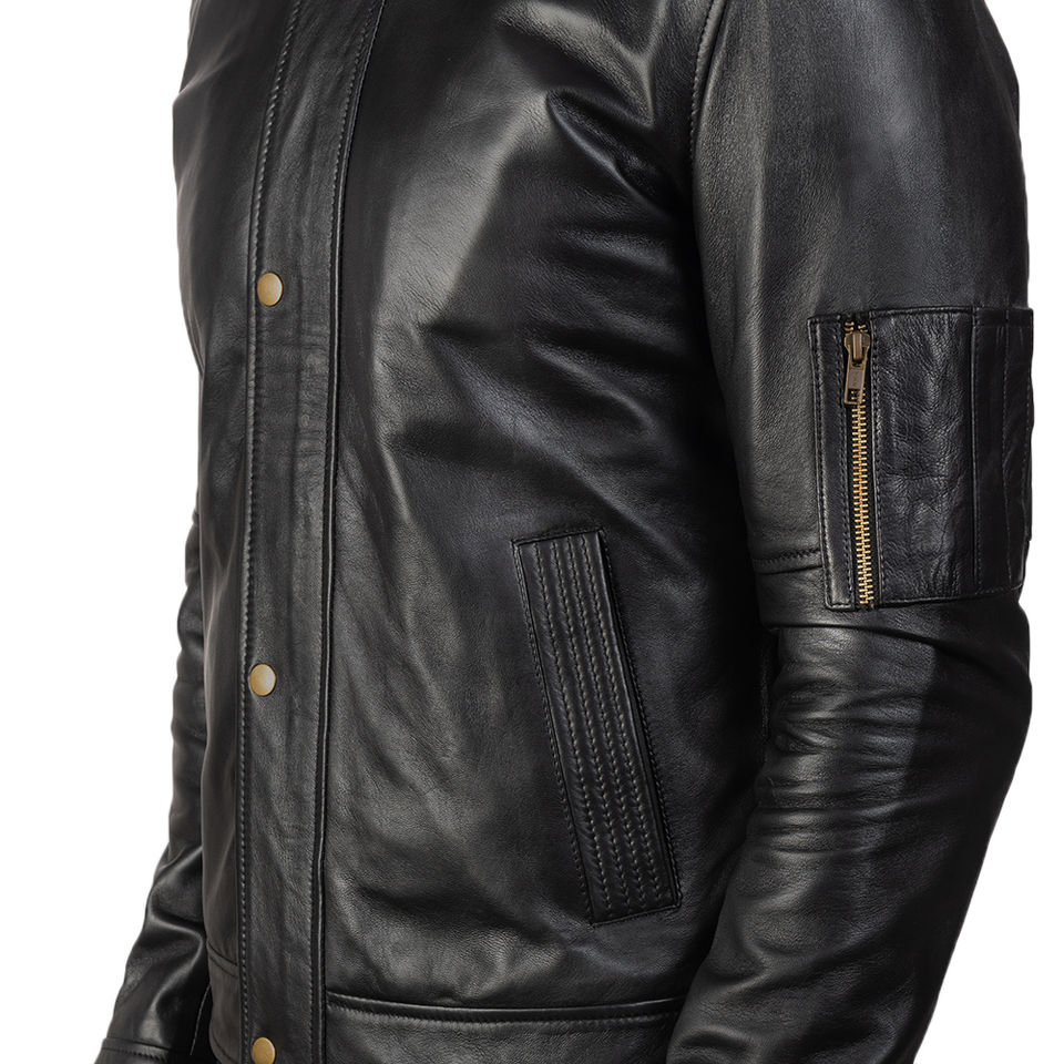 Blouson aviateur en cuir d'hiver personnalisé OEM avec col montant, imperméable, logo personnalisé, cuir véritable, blouson universitaire pour homme