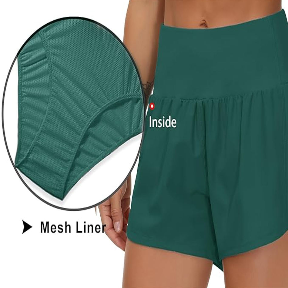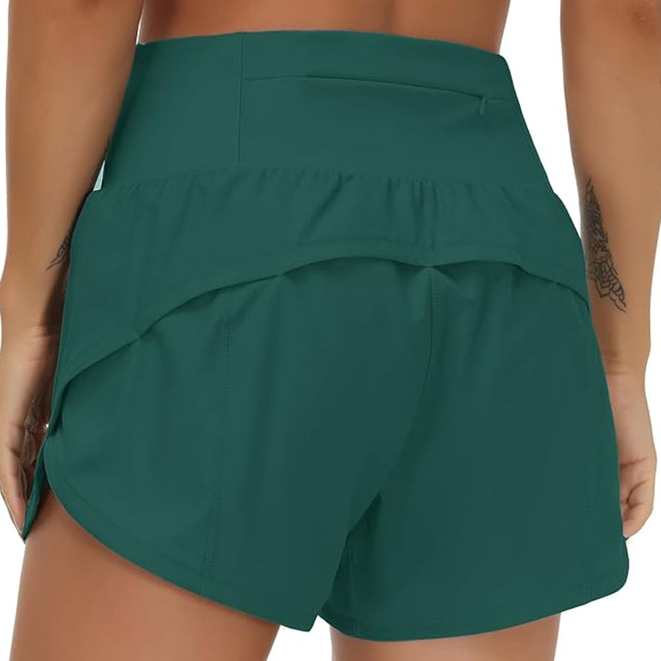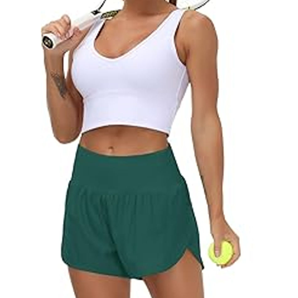 Short de course OEM personnalisé pour femmes, pour l'extérieur, séchage rapide, yoga, fitness, avec doublure intérieure, poche intérieure, short d'athlétisme pour l'entraînement