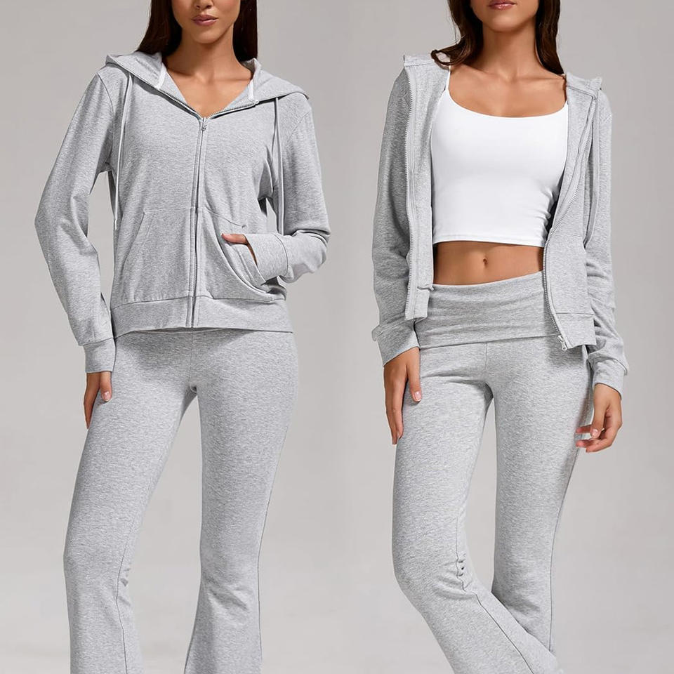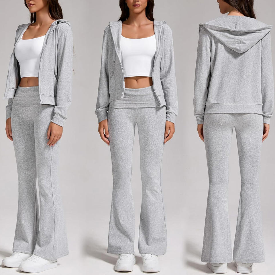 Ensemble de survêtement personnalisé OEM pour femmes, coupe confortable, impression de logo, fabrication de marque privée, tissu doux à motif solide brodé