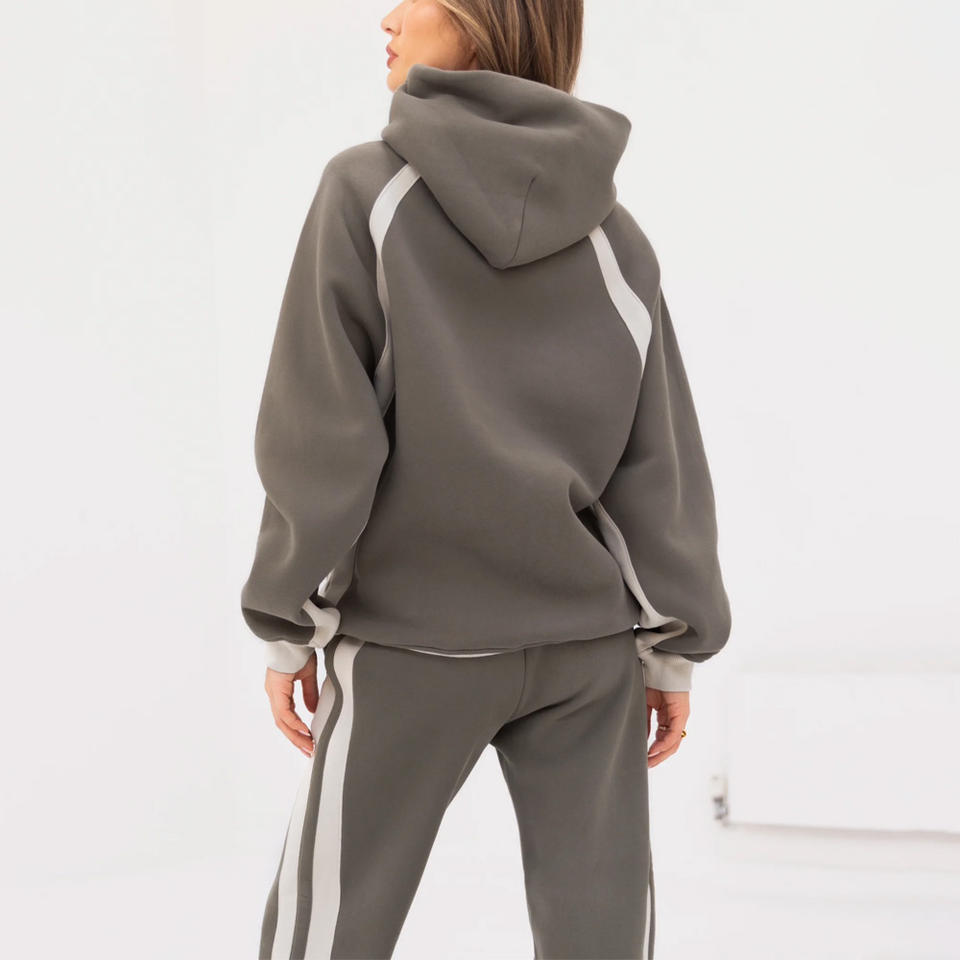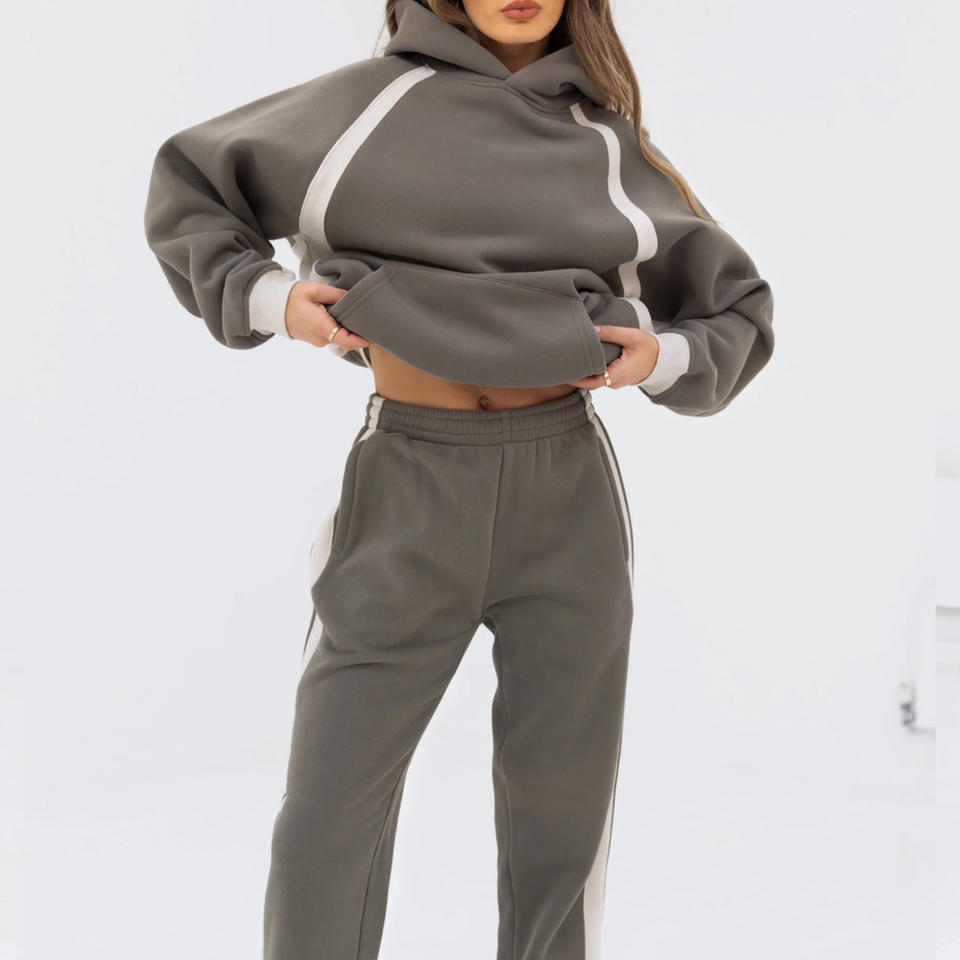 Ensemble de survêtement uni personnalisé OEM pour femmes, tissu respirant brodé, pantalon à capuche vintage à fermeture éclair, marque privée imprimée de logo