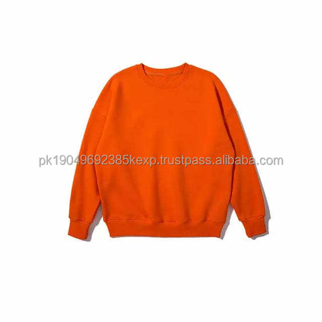 OEM Logo personnalisé Basics Plain Crewneck Sweat-shirt orange pour hommes vierge surdimensionné en coton polaire lourd imprimé de broderie pour hommes
