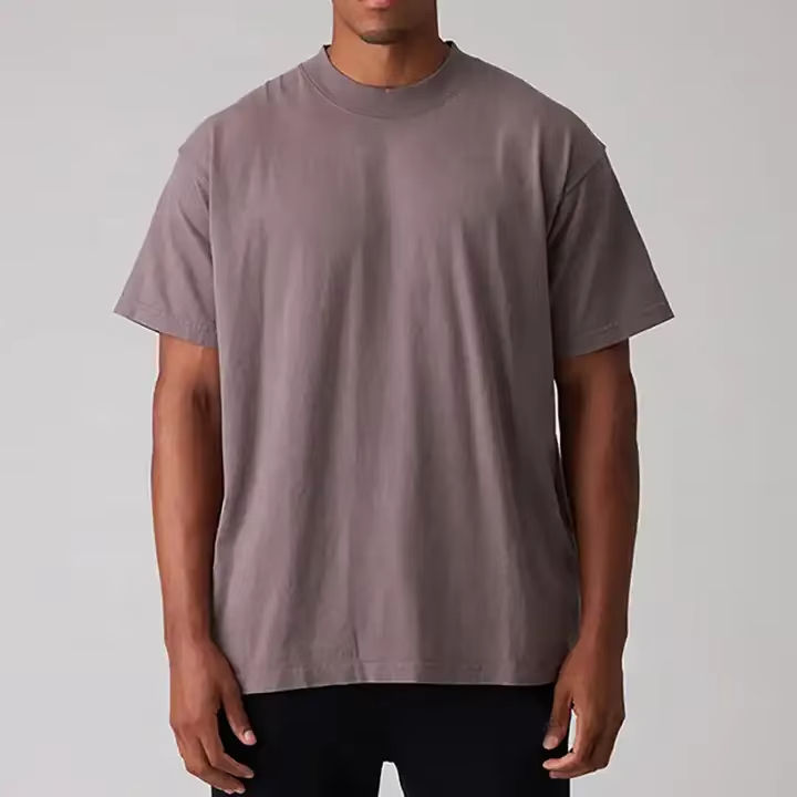 OEM Conception de logo personnalisé T-shirt pour hommes 100% coton vierge surdimensionné épaule tombante côtelée col rond T-shirts vierges pour hommes