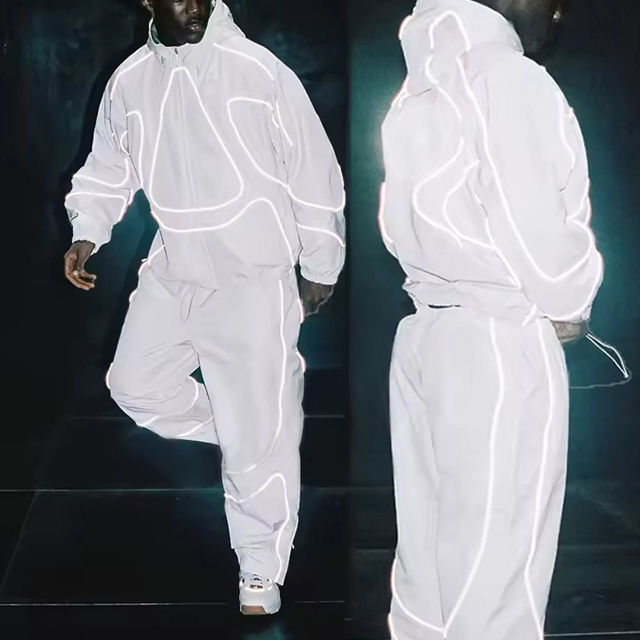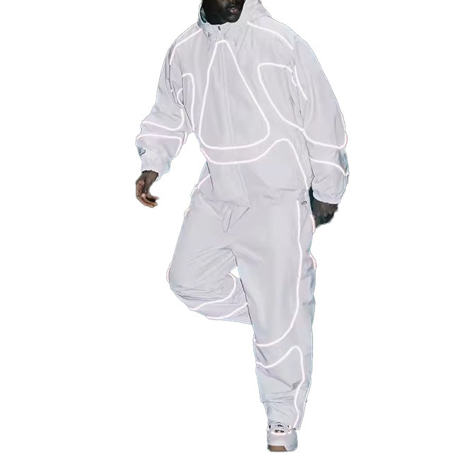 Ensemble survêtement homme coupe-vent imperméable réfléchissant en nylon et polyester avec fermeture éclair, personnalisable avec logo OEM (veste et pantalon)