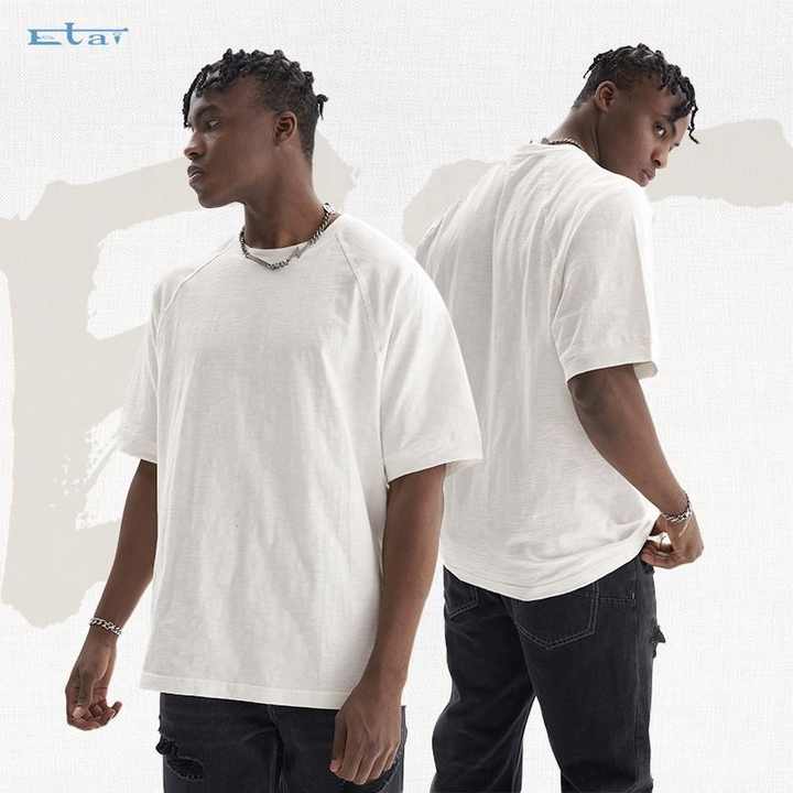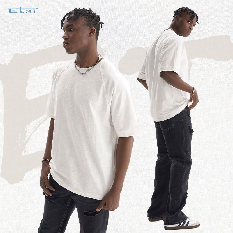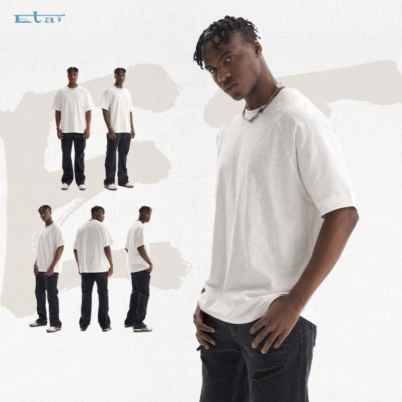 OEM logo personnalisé impression coton flammé vierge t-shirt unisexe 240gsm surdimensionné manches raglan coton flammé hommes t-shirt