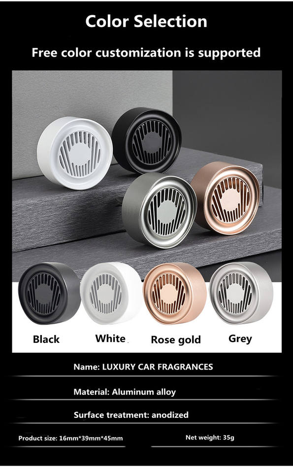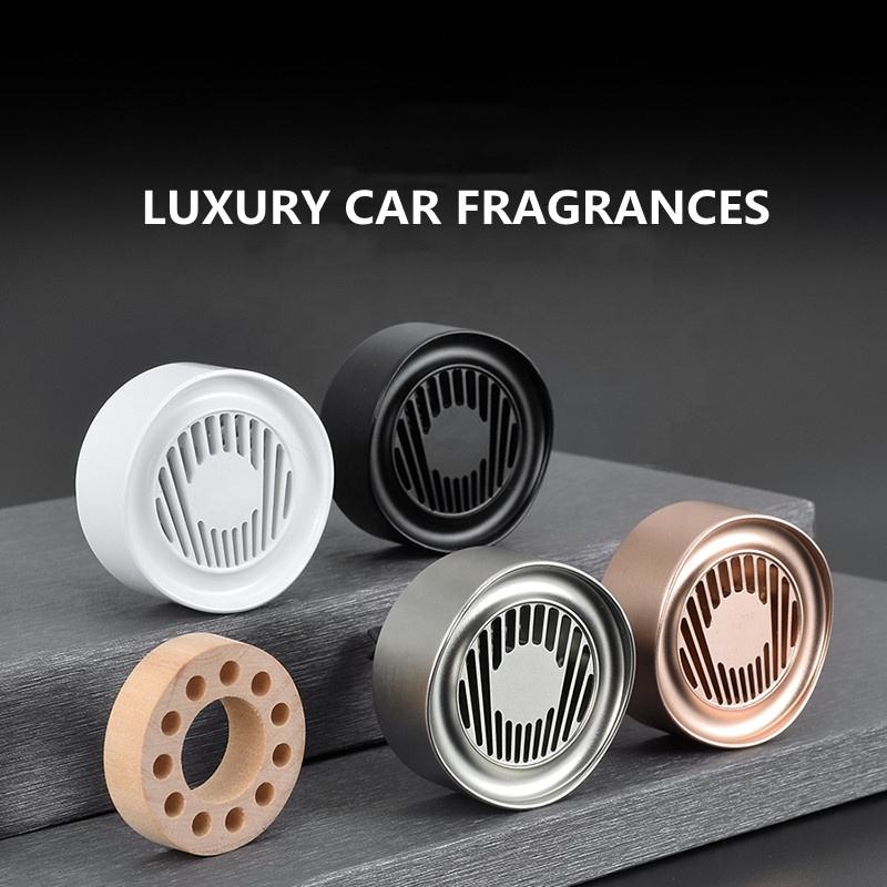 Rafraîchisseur d'air rose de luxe sur mesure OEM diffuseur de parfum à ondes solides longue durée désodorisant de voiture Premium boîte-cadeau en métal