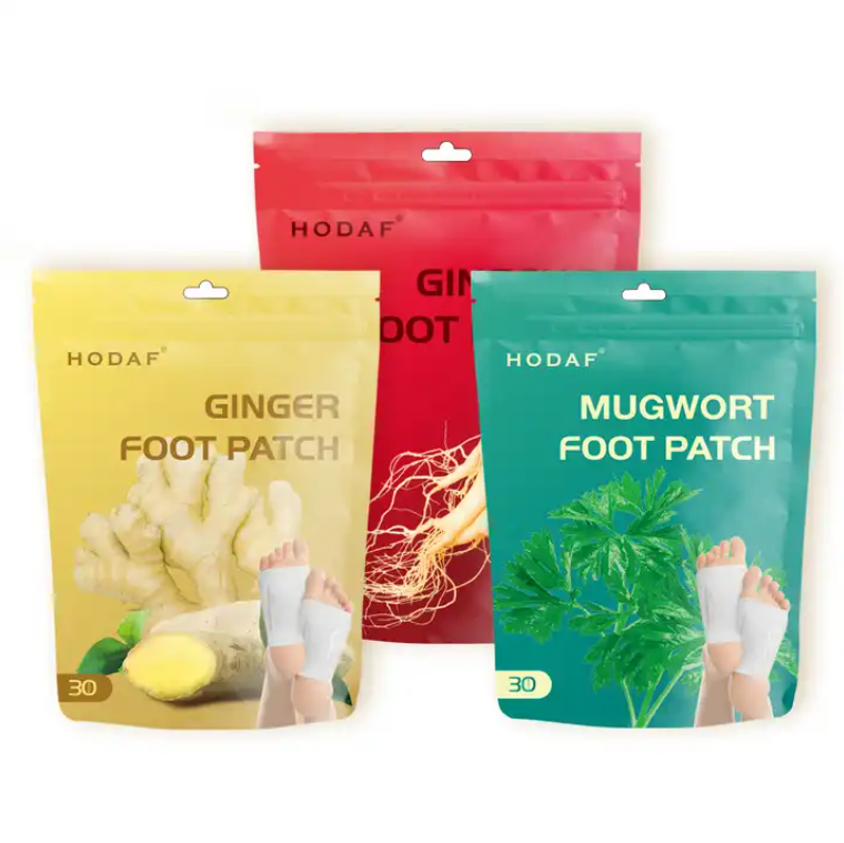 Patchs pour les pieds au gingembre personnalisés OEM avec MOQ pour peaux délicates, formule douce, patchs pour les pieds à l'armoise, extrait d'herbes naturelles