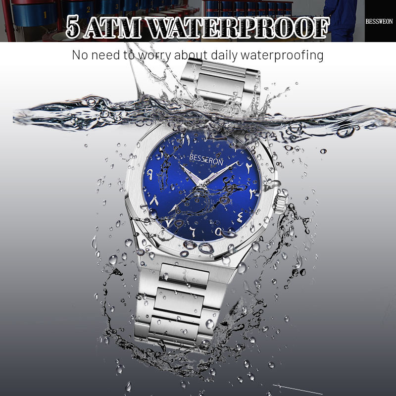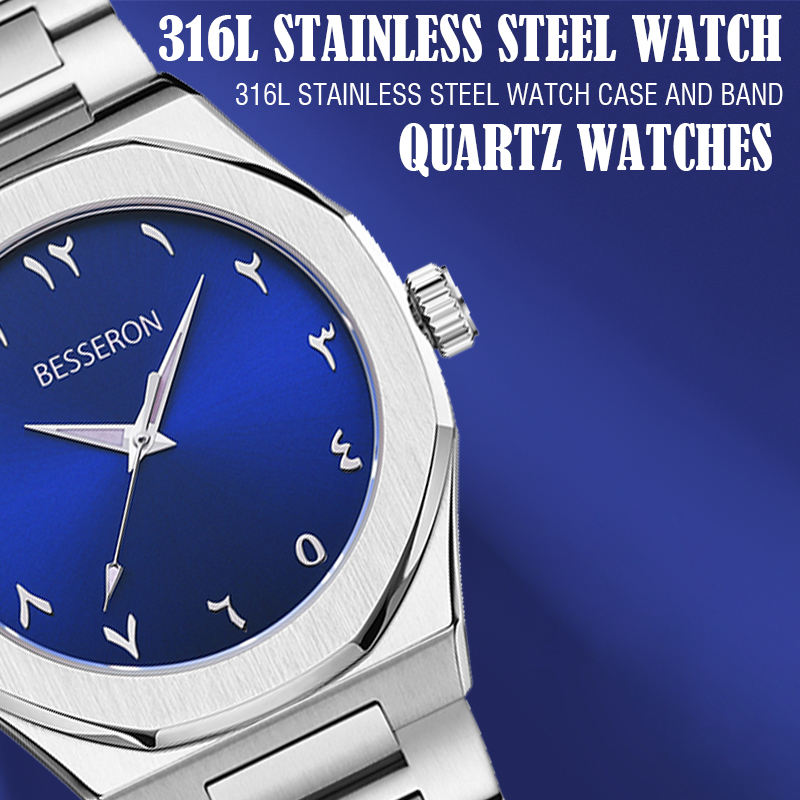 Montre à quartz pour homme en acier inoxydable, personnalisable OEM, luxe, cadran argenté avec chiffres arabes, logo, style sportif tendance, fabriquée en Chine