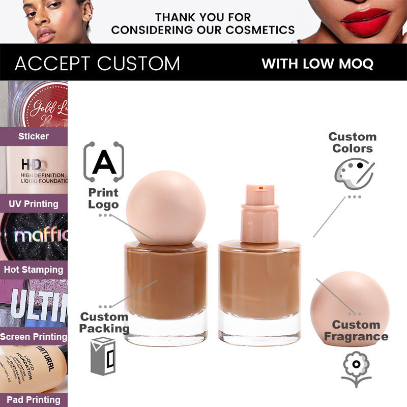 Fond de Teint Liquide Mat Professionnel Personnalisé OEM 30ml, Maquillage Biologique Couvrance Totale, Protection Solaire Marque Privée