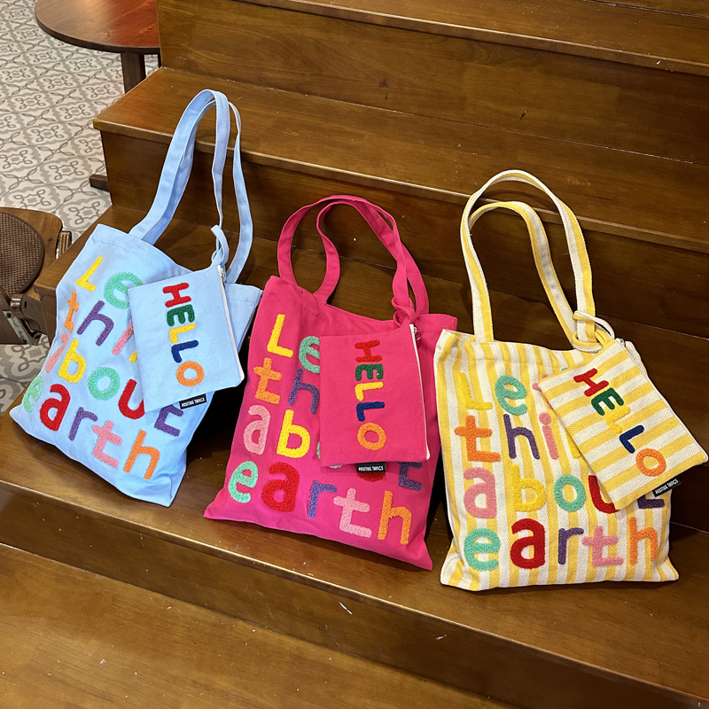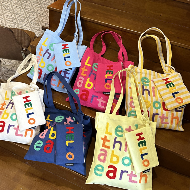 Sacs fourre-tout colorés personnalisés OEM, sac fourre-tout pliable en toile de coton épaisse, sac de plage avec broderie