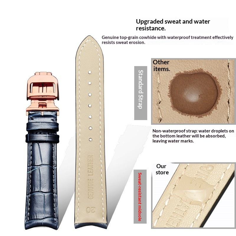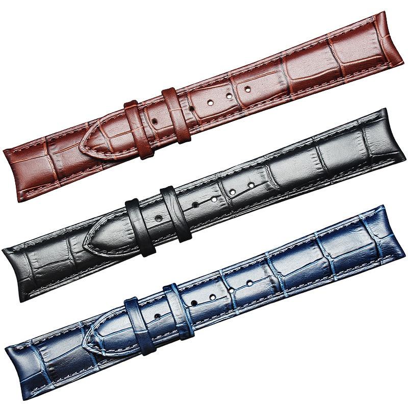 Bracelet de montre en cuir véritable personnalisé OEM avec connexion incurvée, attaches rapides incurvées et extrémités incurvées en alligator