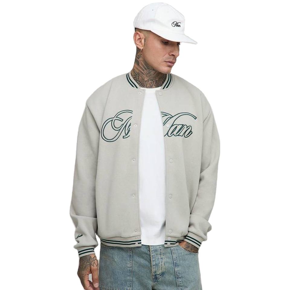 Veste de style universitaire décontractée coupe-vent en peau de mouton avec logo personnalisé OEM, broderie sur le devant, manches extra larges pour hommes