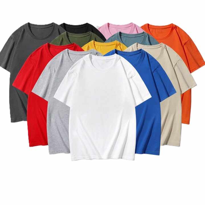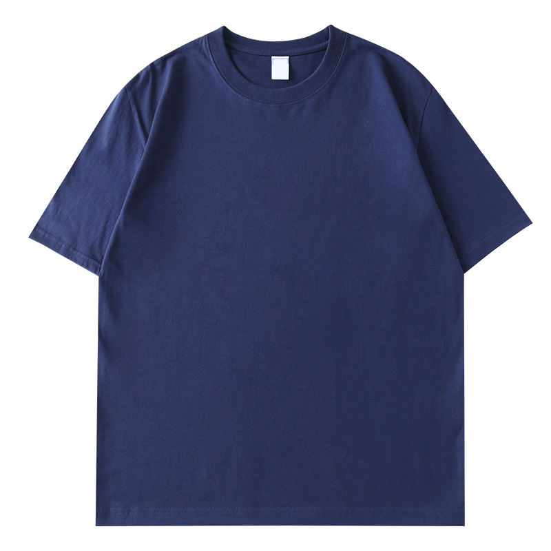T-shirt d'été unisexe à manches courtes, col rond, couleur unie, coupe ample, en coton peigné CVC 180g, avec broderie de logo personnalisée OEM