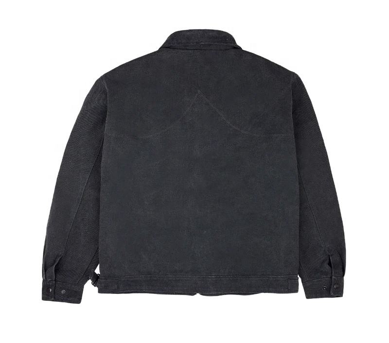 Veste de travail en denim à col rabattu, broderie personnalisée avec logo OEM, imperméable, coupe-vent, respirante, boutons recouverts pour hommes