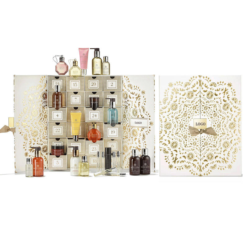 OEM Customized Logo Holiday Advent Calendar Box Cosmetic Gift Package Beauty Countdown Empty 24-days Perfume Packaging Box