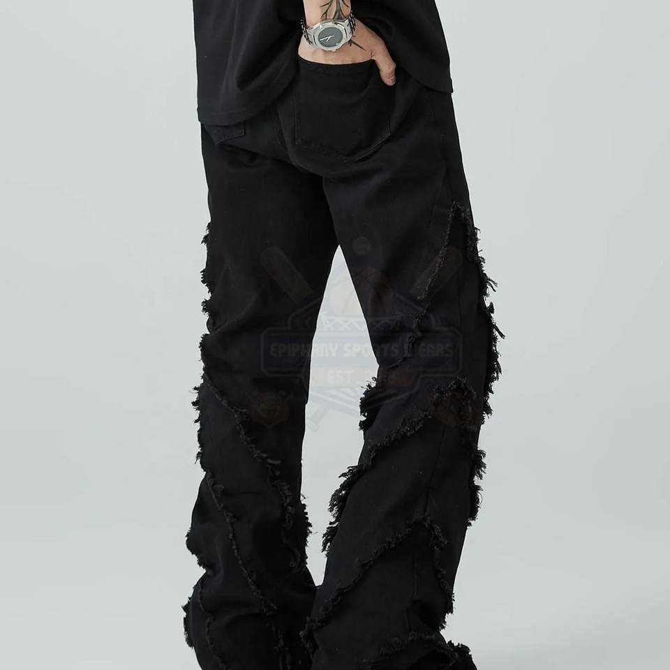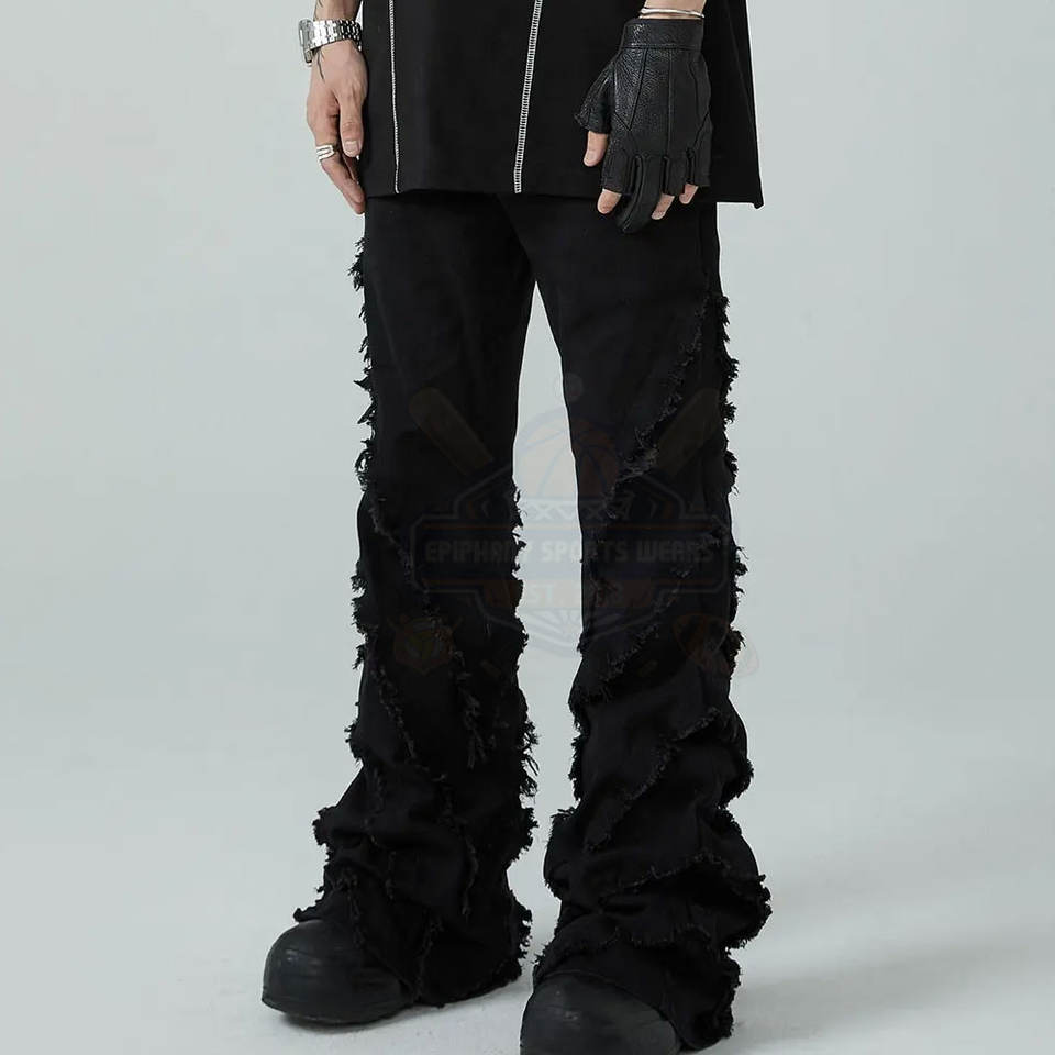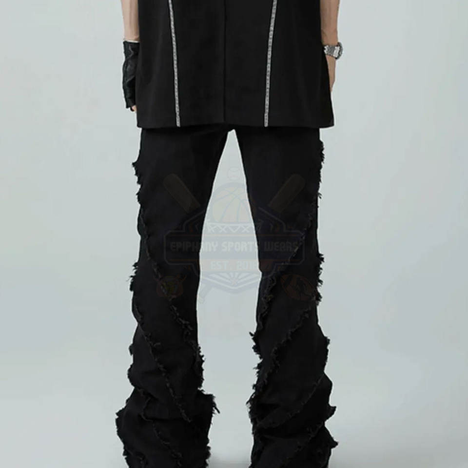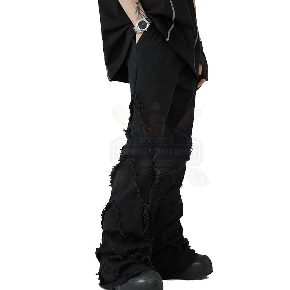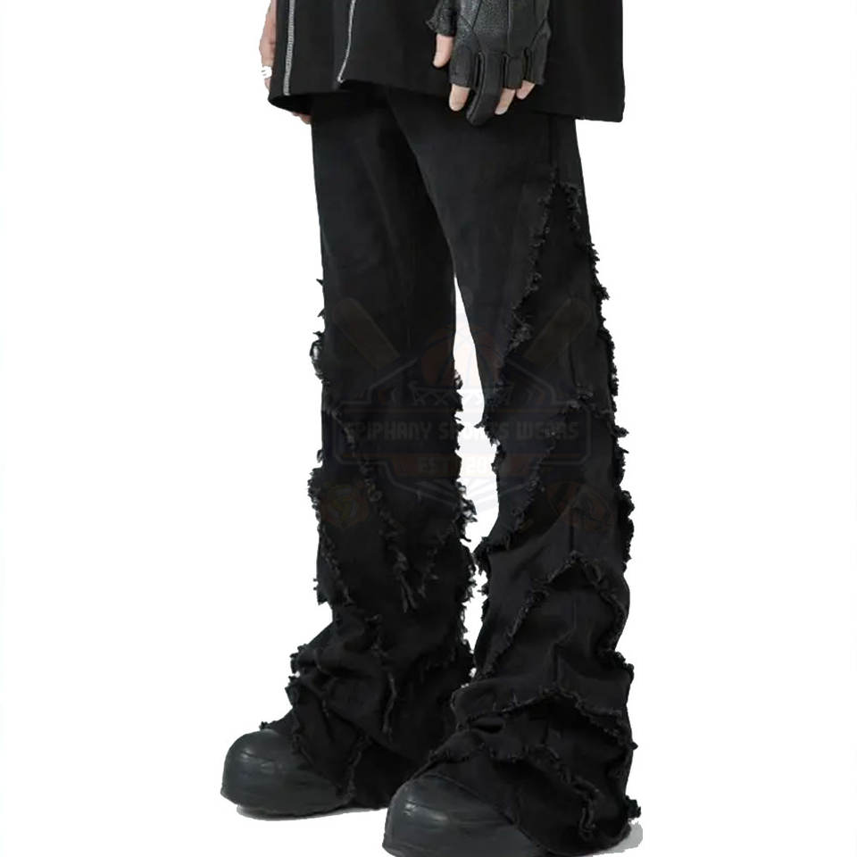 Pantalon décontracté pour homme, coupe évasée, empilé, léger, de haute qualité, avec logo personnalisé OEM, fermeture à boutons, lavage moyen foncé, 100%