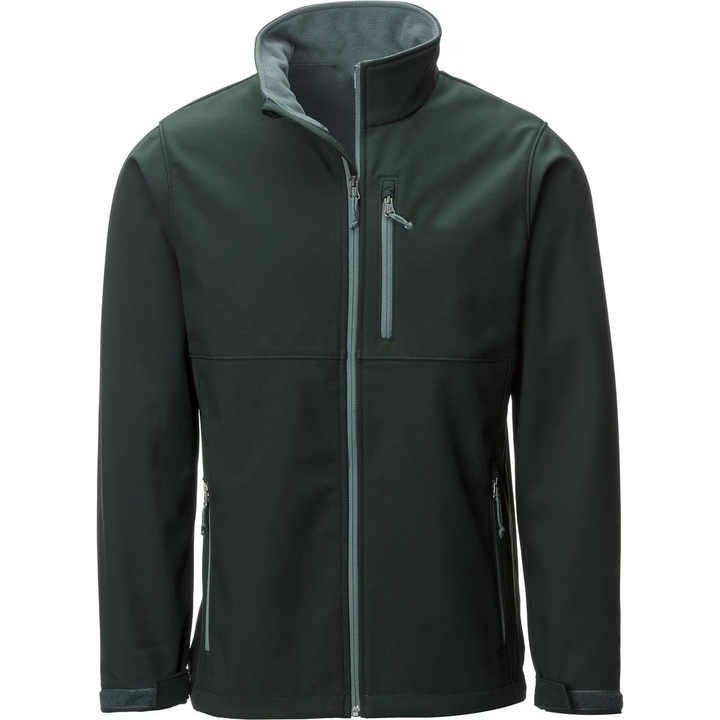 Veste Softshell verte respirante et imperméable pour homme, avec col réglable, logo personnalisé OEM, vente en gros