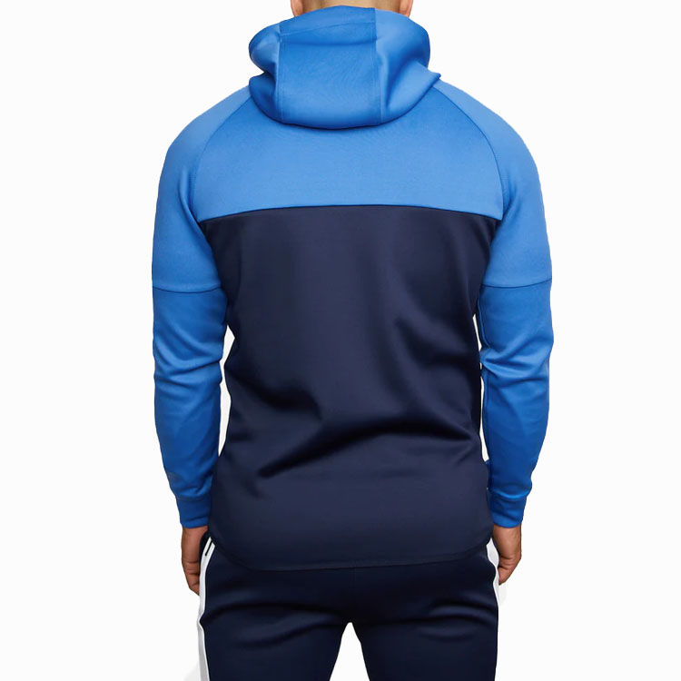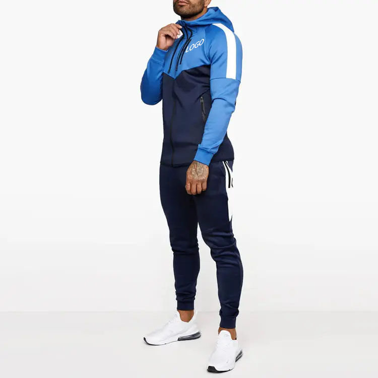 Tenue de sport personnalisée OEM pour hommes, survêtement, sweat à capuche zippé et jogger, ensemble patchwork de survêtements de sport à blocs de couleurs, 2 pièces