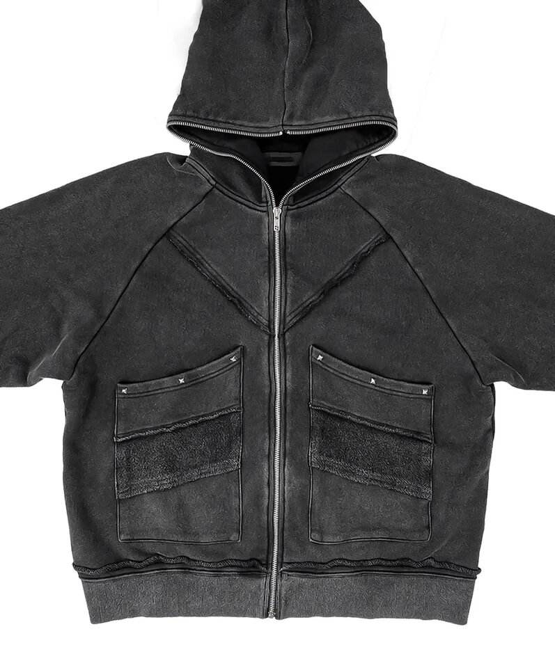 Sweat à capuche surdimensionné en molleton bouclette 100 % coton pour homme, personnalisé OEM, avec manches raglan, poche plaquée et fermeture éclair intégrale, effet délavé à la pierre, idéal pour l'hiver