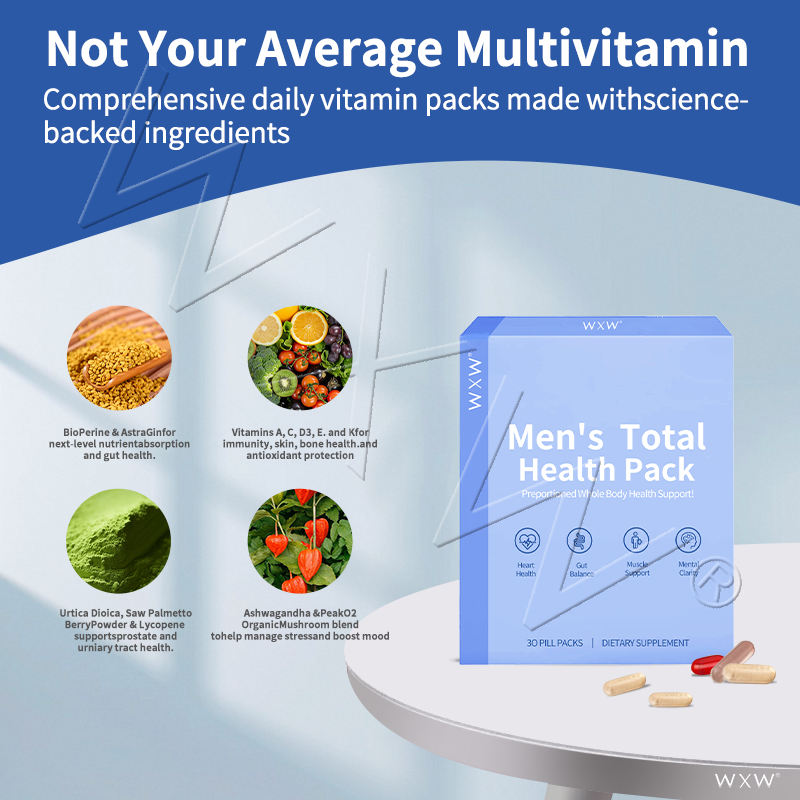 Packs quotidiens de vitamines OEM personnalisés pour hommes Total Health Supplément de santé avec soutien de l'équilibre intestinal en fibres alimentaires