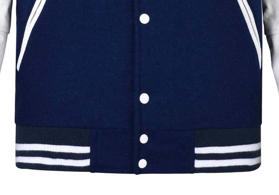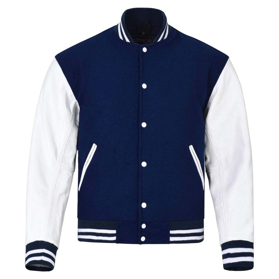 Blouson universitaire personnalisé OEM pour homme, en laine, grande taille, col mandarin, manches en cuir, respirant, vente en gros, vêtements vierges