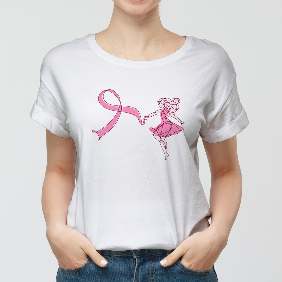 OEM Customized Pink Ribbon Women Breast Cancer Awareness Summer Fashion Women Summer T-shirt Cotton Over Size T-shirt