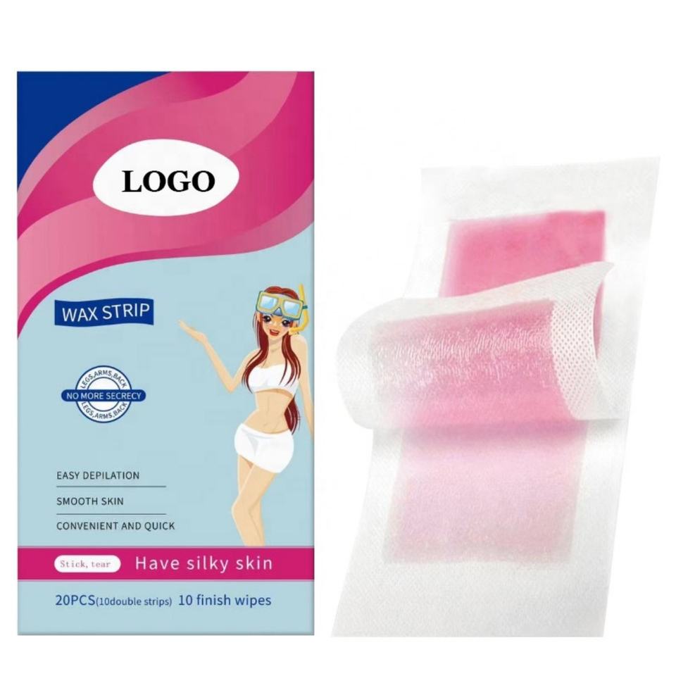 Bandes de cire dépilatoires personnalisées OEM avec logo privé pour une peau propre et lisse, épilation du corps et des jambes