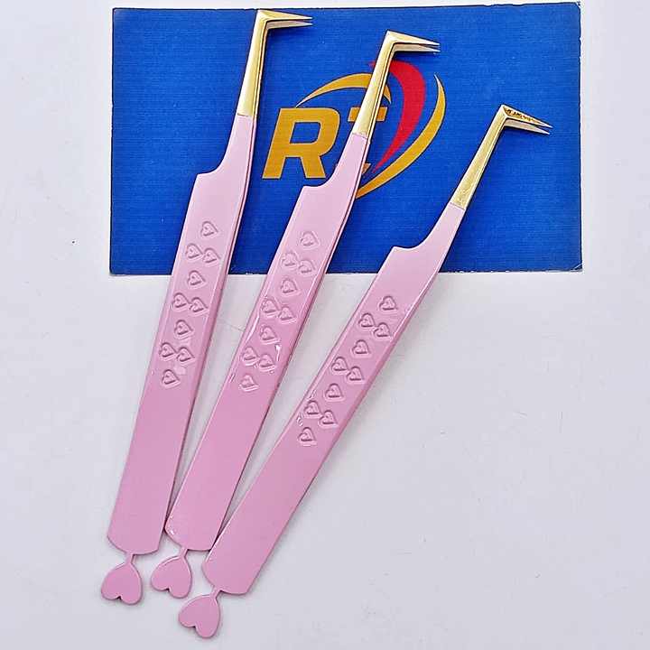 Pince à épiler pour extensions de cils en acier inoxydable OEM personnalisée, anti-statique, à pointe de précision, avec manche CNC en forme de cœur rose