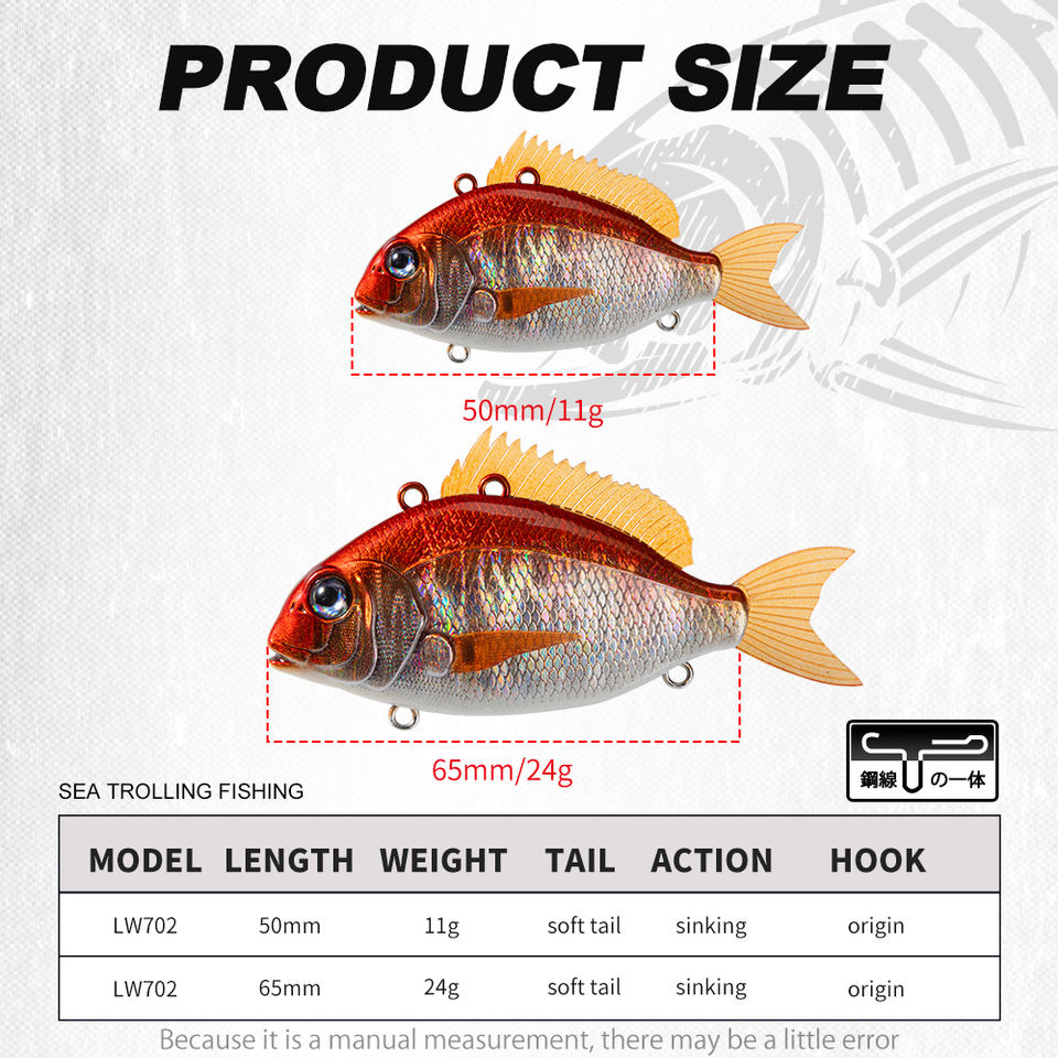 Leurre de pêche VIB personnalisé OEM, appât d'hiver, 50 mm/11 g, 65 mm/24 g, hameçons wobbler pour brochet, basse, leurres coulants pour la pêche à la traîne