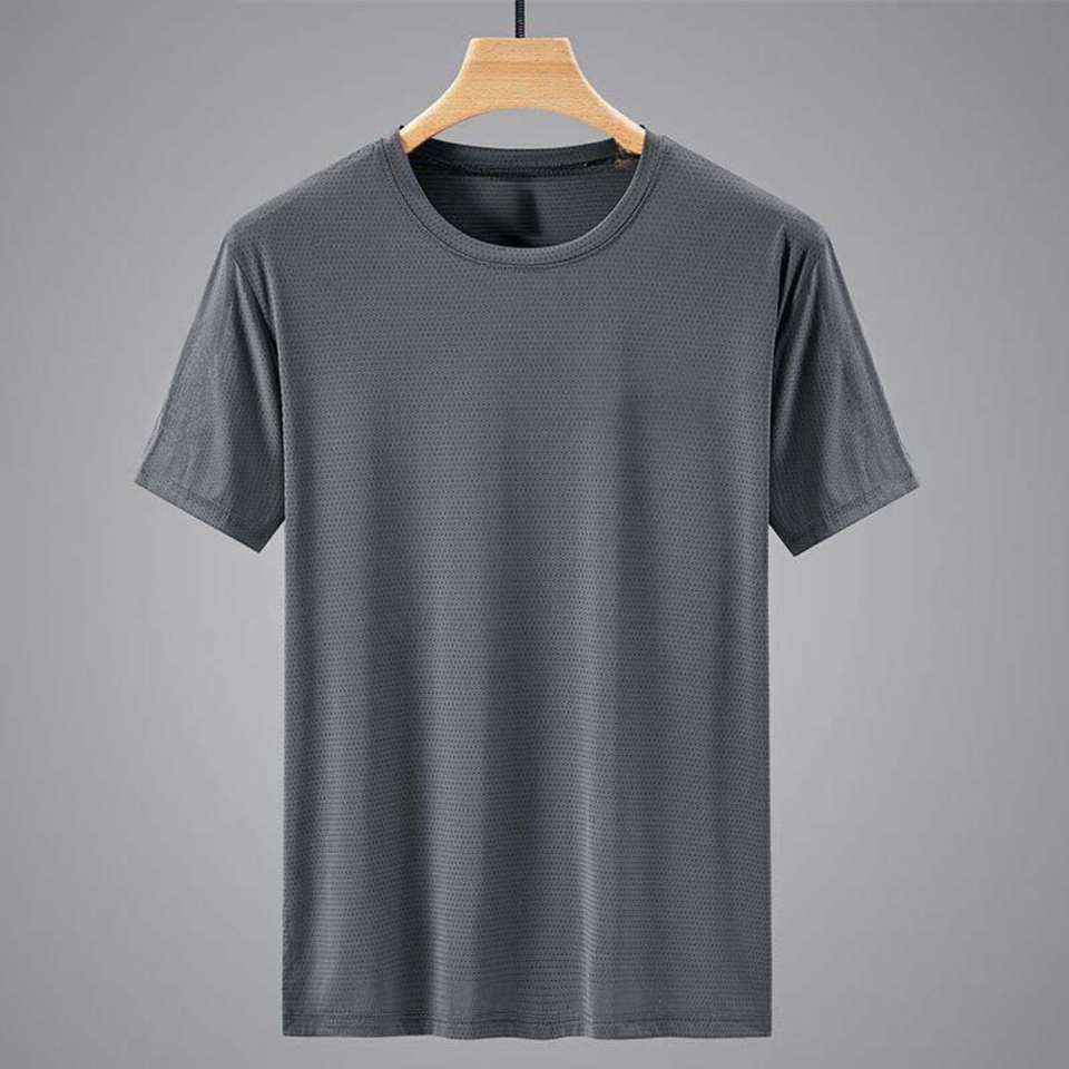 T-shirt en soie glacée personnalisé avec logo OEM pour homme, col rond, séchage rapide, manches courtes, fin et respirant