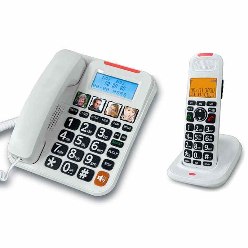 Téléphone sans fil OEM D2015 TAM DECT avec gros boutons et numérotation photo, téléphone sans fil numérique extensible avec 2 combinés