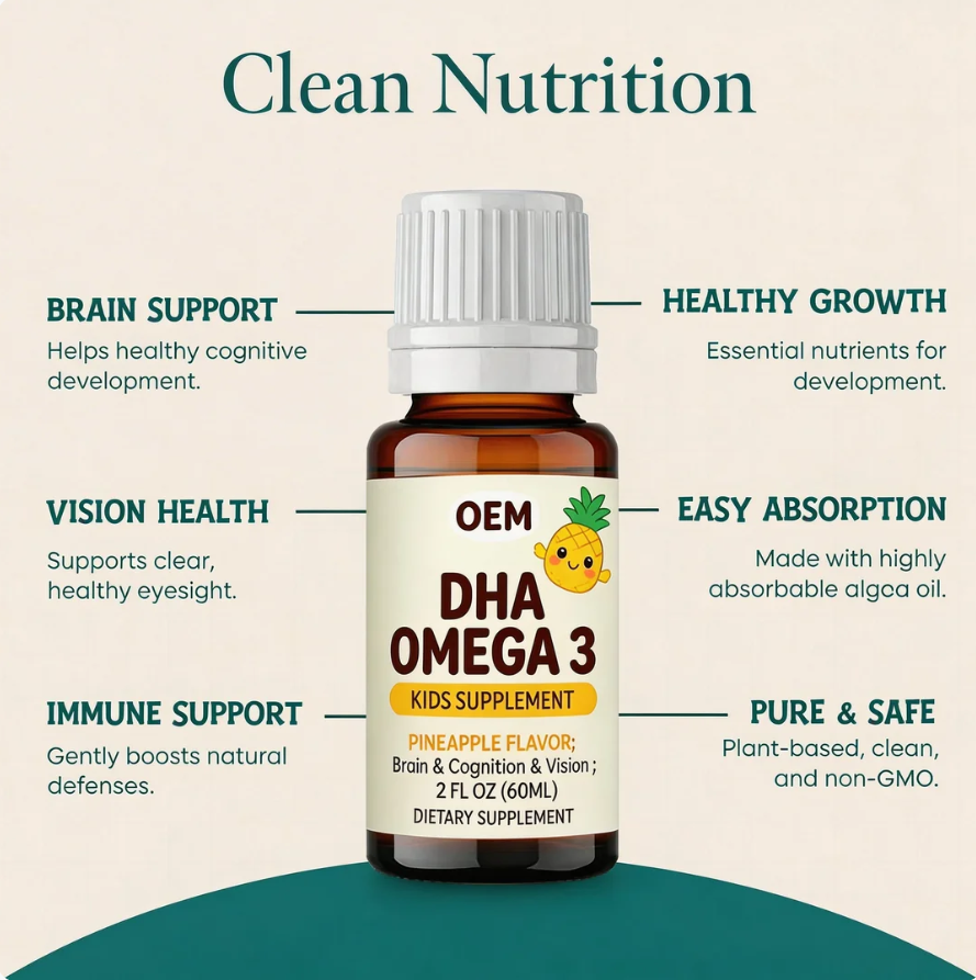 Gouttes d'oméga 3 DHA pour enfants, oméga 3 liquide végétalien pour nourrissons et tout-petits, complément DHA pour la santé du cerveau, des yeux et du système immunitaire du bébé