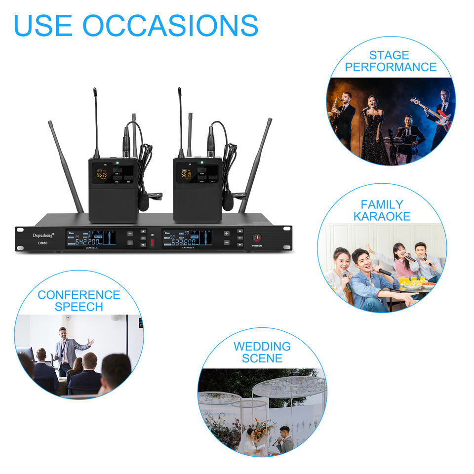 Microphone Lavalier Sans Fil Dynamique en Métal OEM DR80, Portée de Réception 150m, Réduction du Bruit, Léger, Idéal pour Église, Conférences, Scène