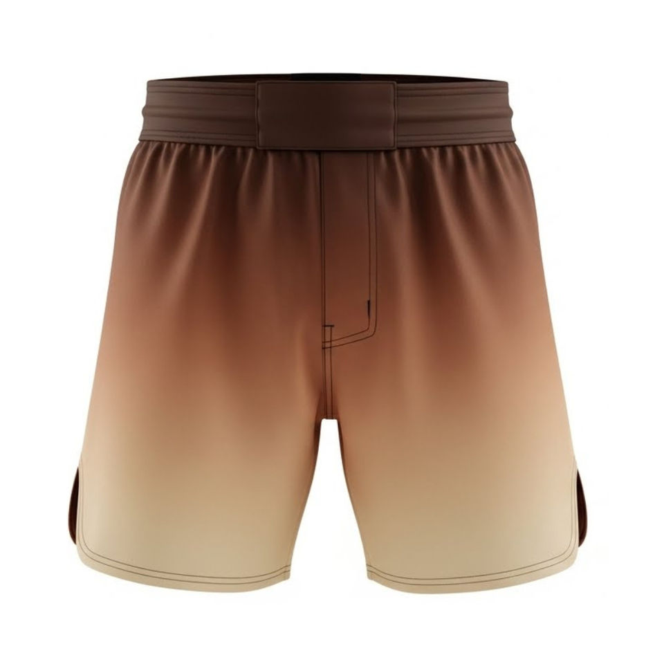 Shorts MMA OEM dégradé beige sable foncé, classiques, pour entraînement de boxe, arts martiaux, extensibles, respirants, séchage rapide