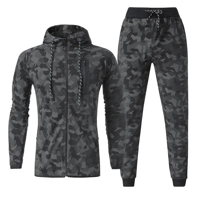 Ensemble de survêtements d'hiver pour hommes, design OEM, 100 % coton, imprimé personnalisé, sweat à capuche zippé et pantalon de jogging