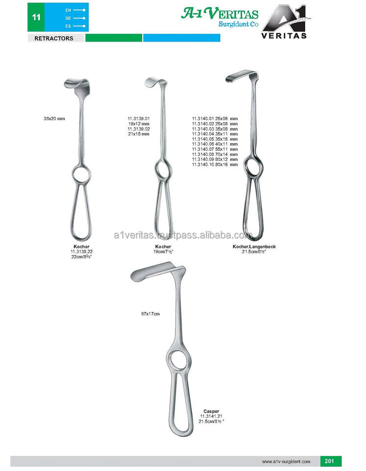 Spécification:Écarteurs d'instruments chirurgicaux de base
