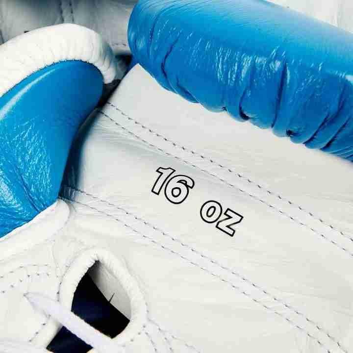 OEM Design Lightweight Leather MMA Gloves Sky Blue White Lace-Up Moisture Wicking Fold Back Fingers Boxing Gloves Training