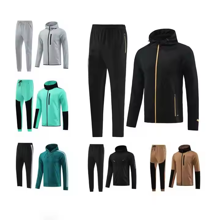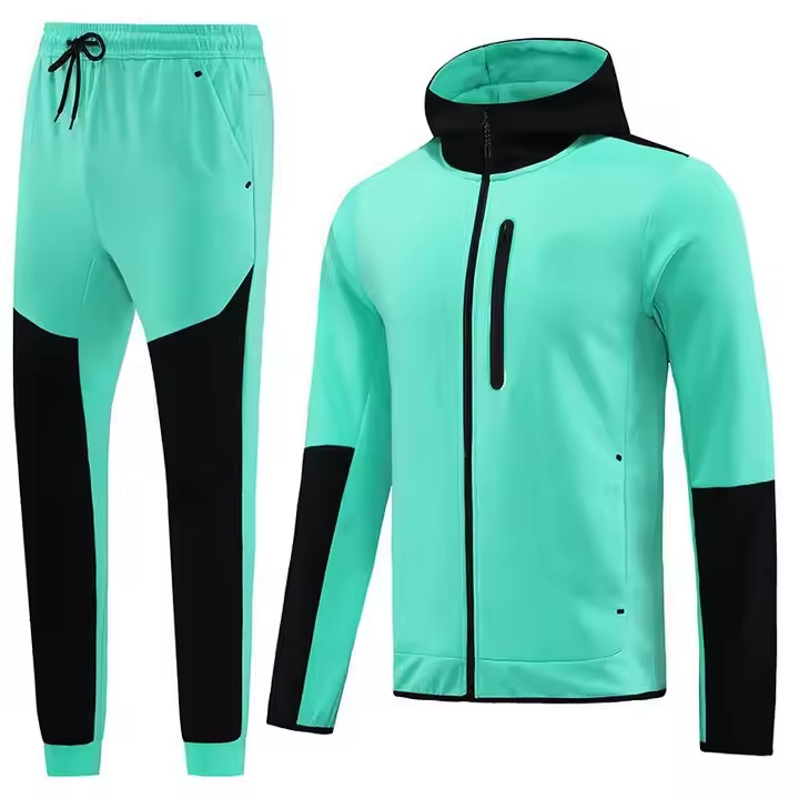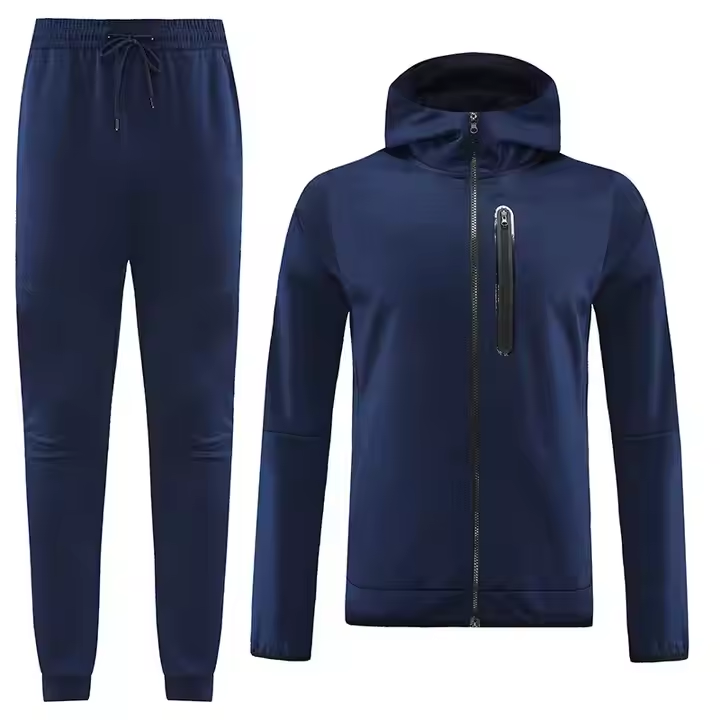 Ensemble de survêtement technique pour homme, design OEM, sweat à capuche zippé intégral et pantalon de jogging, 69% coton, 31% polyester, bleu zinc, grandes tailles