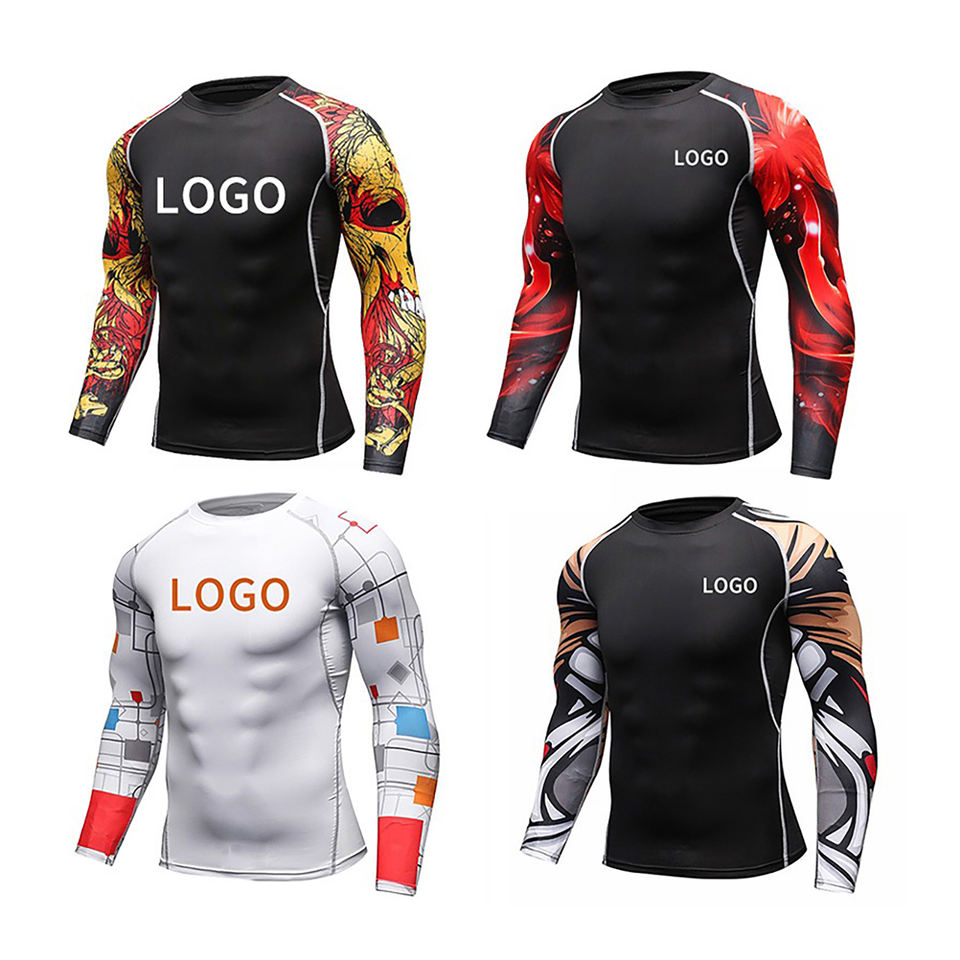 Rashguard de compression MMA personnalisé avec design OEM, imprimé par sublimation, en Spandex/Polyester, unisexe adulte