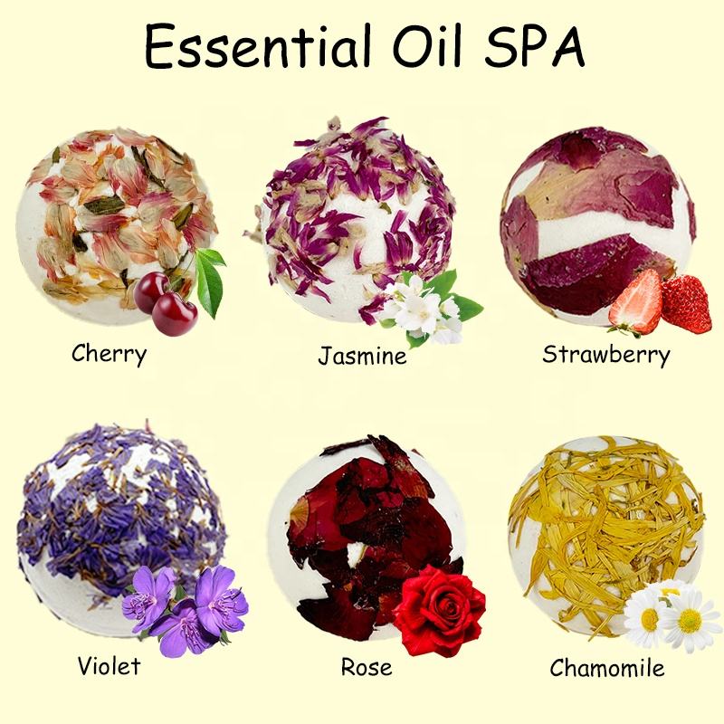 OEM Boules de sel de bain aux huiles essentielles d'extrait de fleurs sèches Coffret cadeau bombe pour bain moussant de spa à fleurs pour hommes et femmes