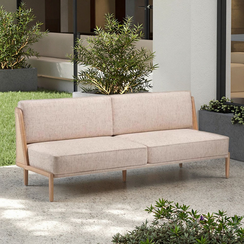 Canapé en rotin synthétique PE résistant aux intempéries, cadre en bois massif teck, siège en résine tressée pour jardin, terrasse, bord de piscine