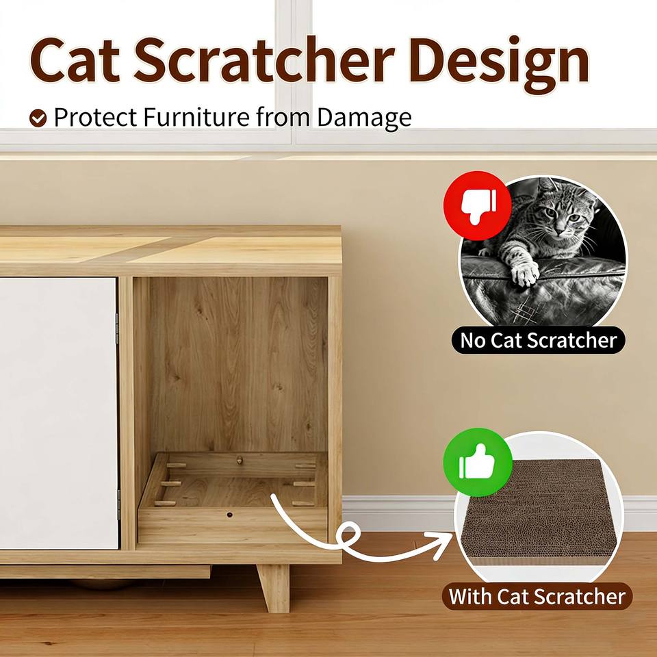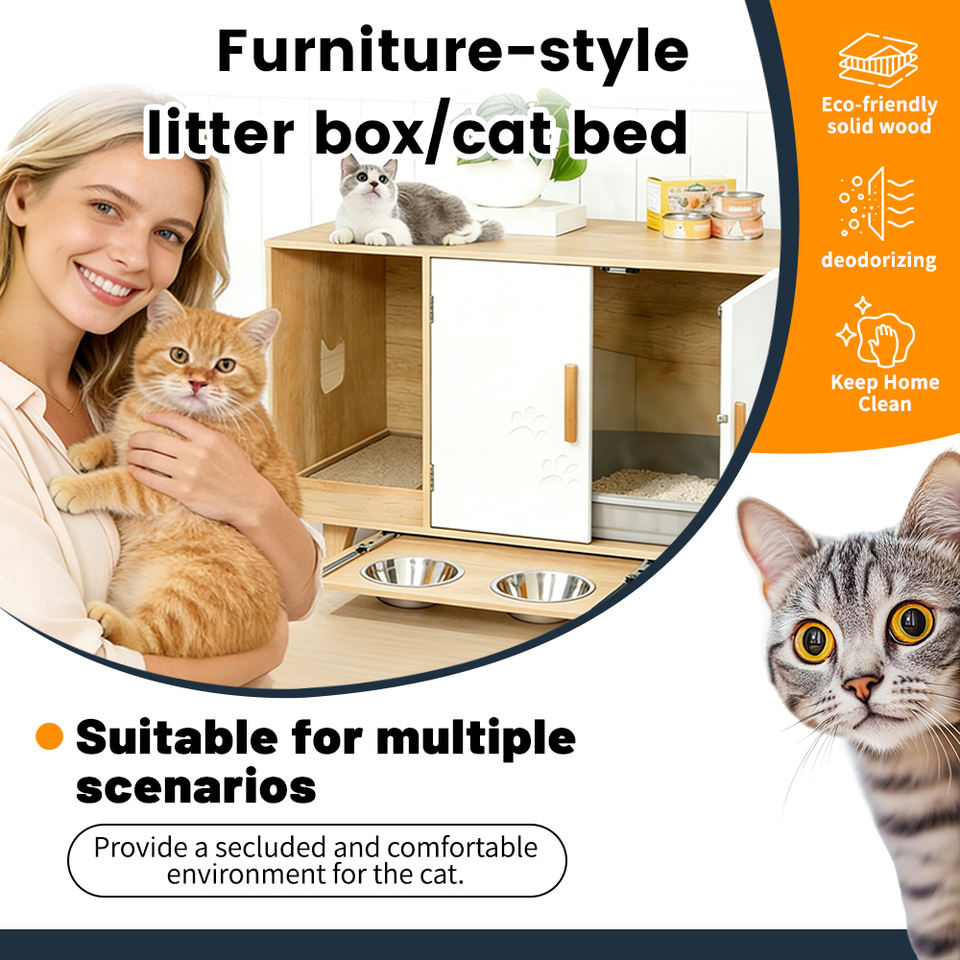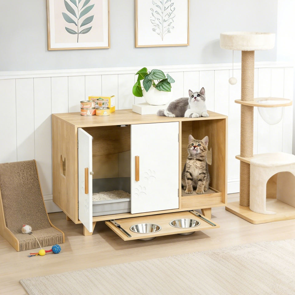 Mobilier pour chat en bois écologique OEM avec bac à litière dissimulé et station d'alimentation, pour intérieur