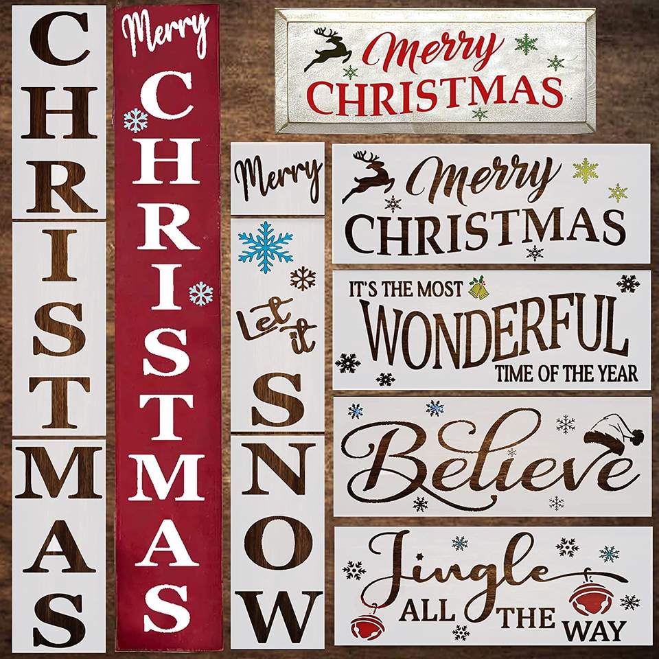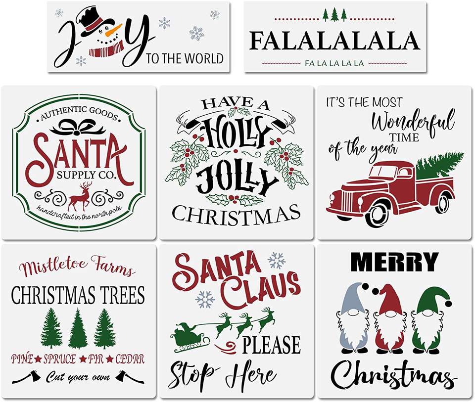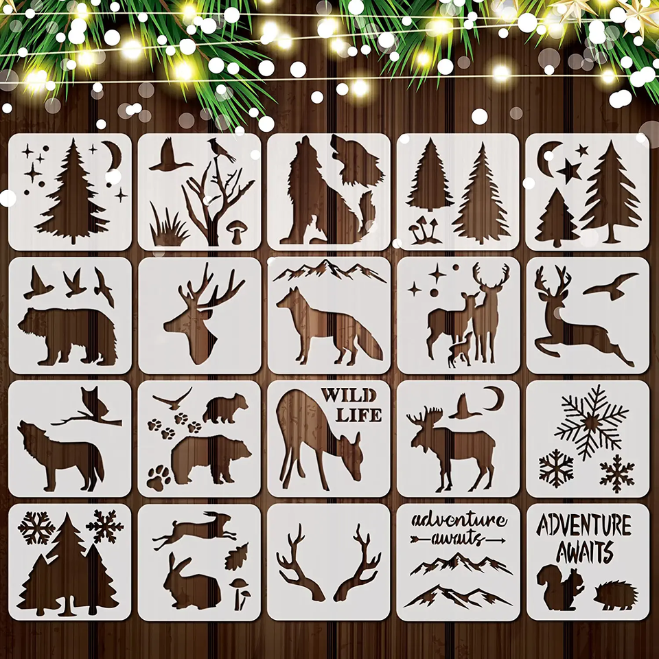 Modèle de peinture d'art de forme personnalisée en plastique écologique OEM Pochoir d'étudiant Pochoirs de dessin carrés de Noël