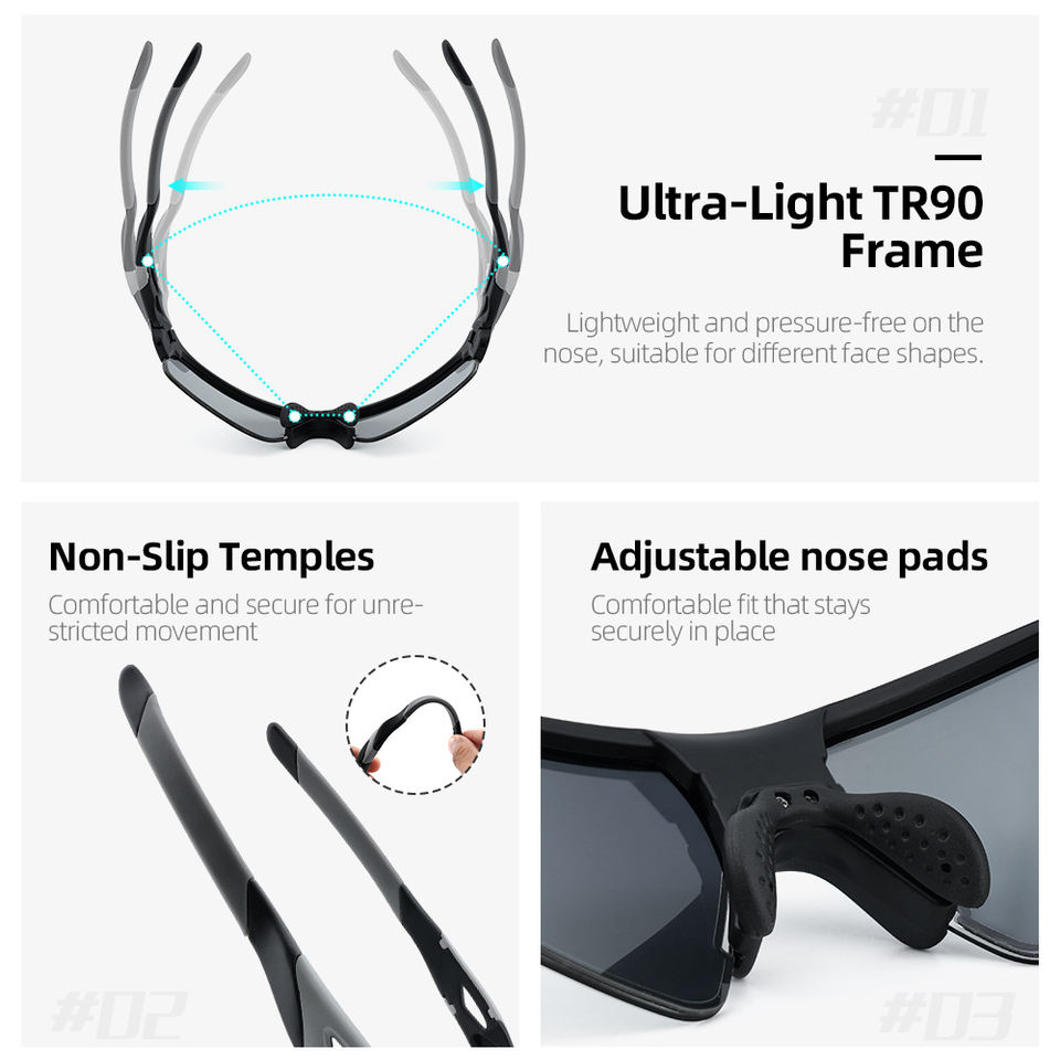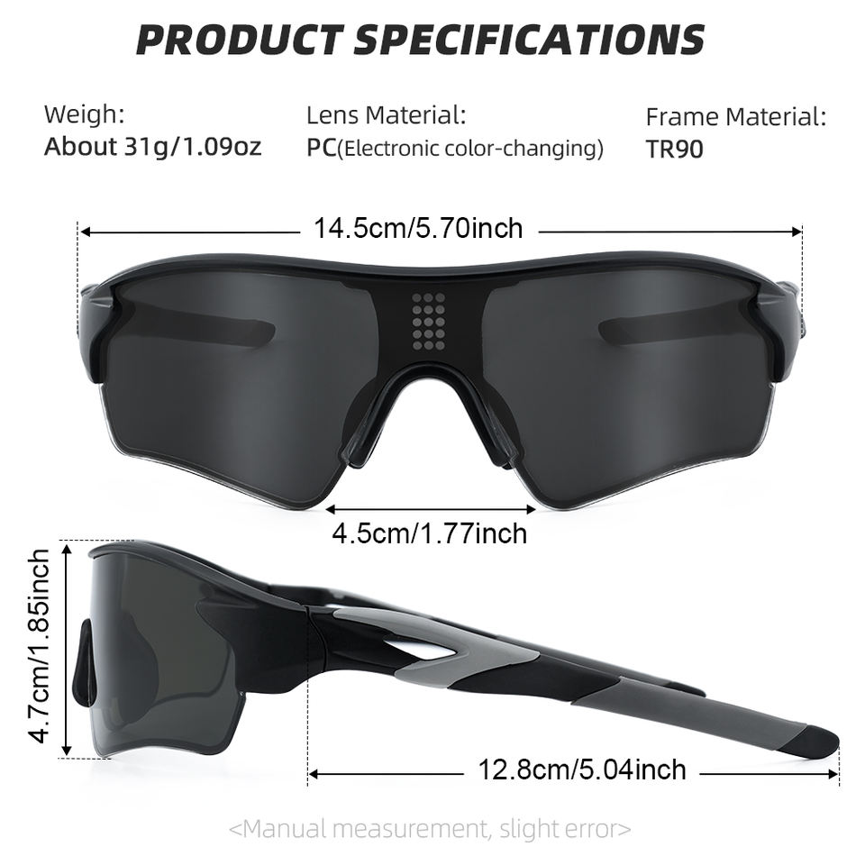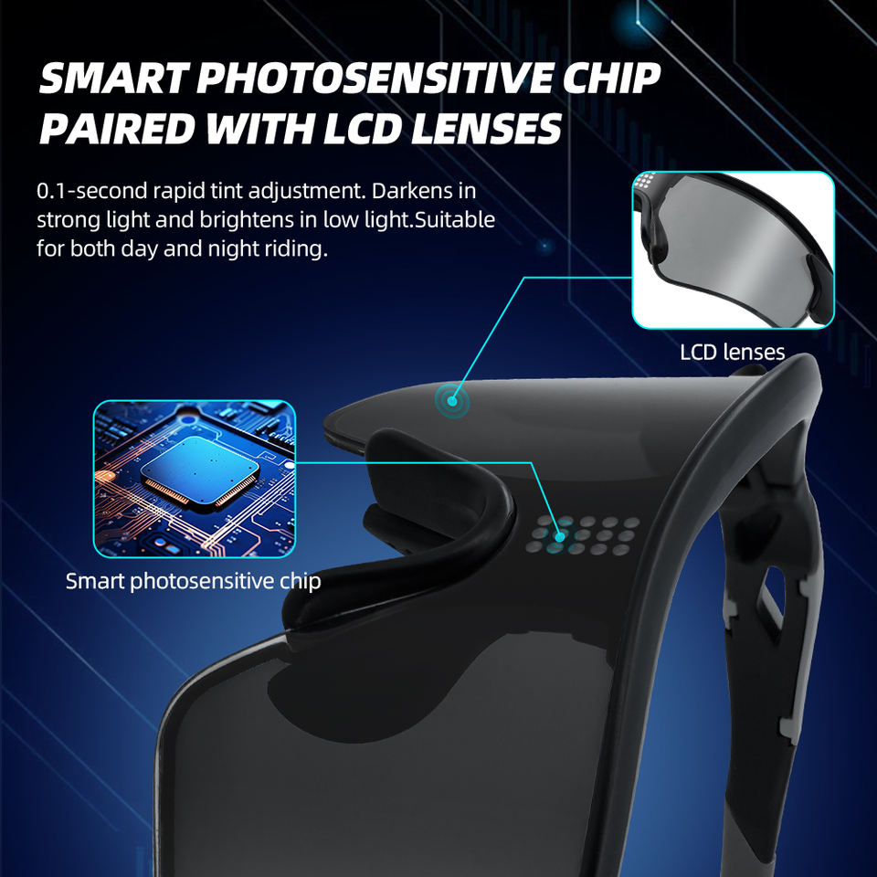 Lunettes de soleil intelligentes à teinte variable électronique OEM, lentille LCD adaptative instantanée 0,1 s, lunettes de sport TR90 pour le cyclisme, la conduite, jour et nuit