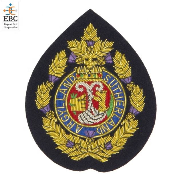 Écussons en feutre brodés 3D à coudre OEM, deux épées, tête de lion, couronne dorée, accessoires pour uniformes de pompiers et scouts